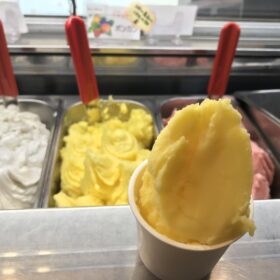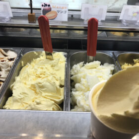 本日のメニュー ジェラート 高田牛乳ジェラート(室戸 高田乳業) 抹茶ジェラート チョコレートジェラート マンゴージェラート(南国市 西島園芸団地)★…