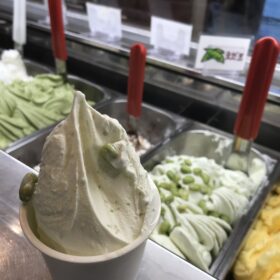 本日のメニュー ジェラート 高田牛乳ジェラート(室戸 高田乳業) 抹茶ジェラート チョコレートジェラート キャラメルジェラート 枝豆ジェラート今年初登…